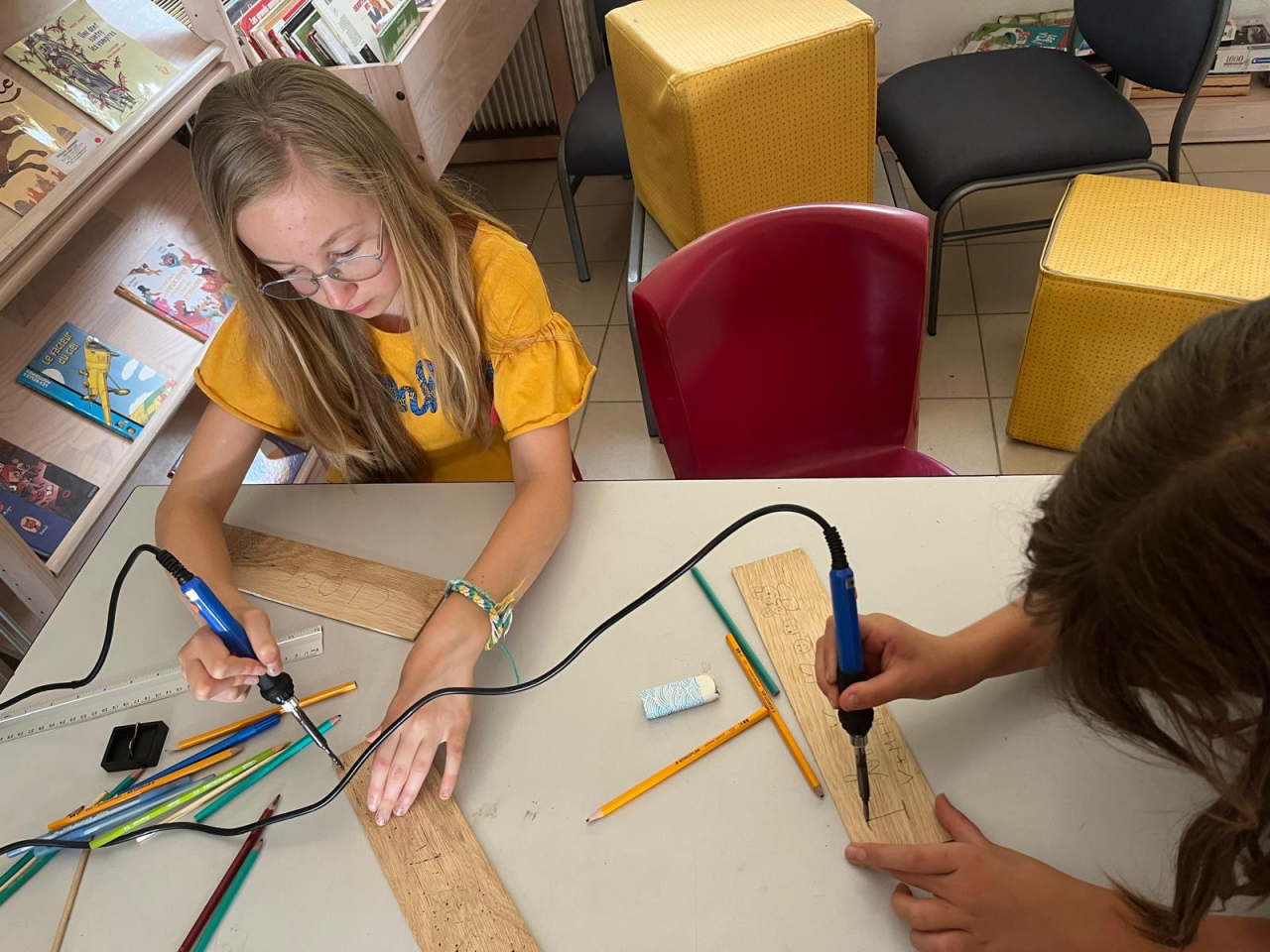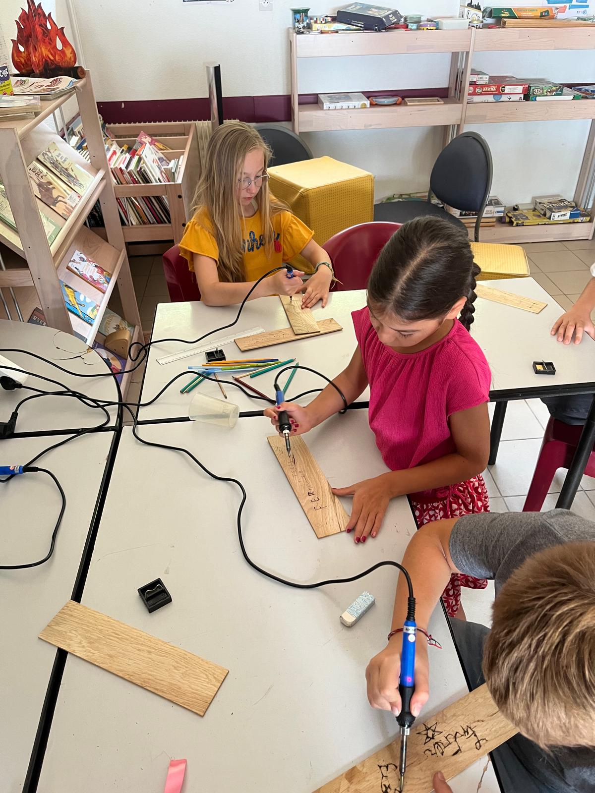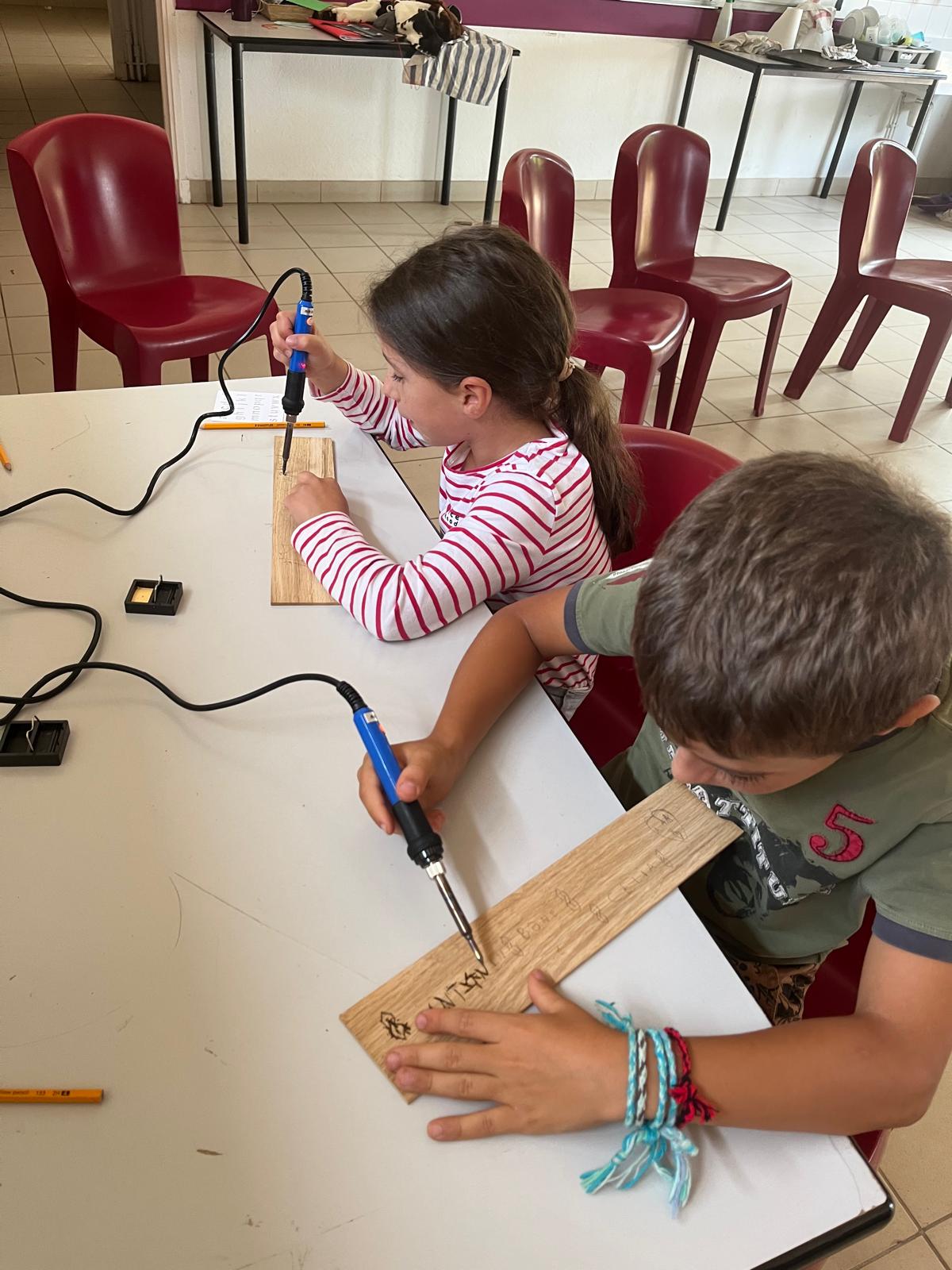 Les Cherokee ont apprivoisé le bois, matière dominante dans la forêt de Tronçais adjacente au camp, afin de s'essayer à la pyrogravure .. va, cours, vole et grave ton dessin !