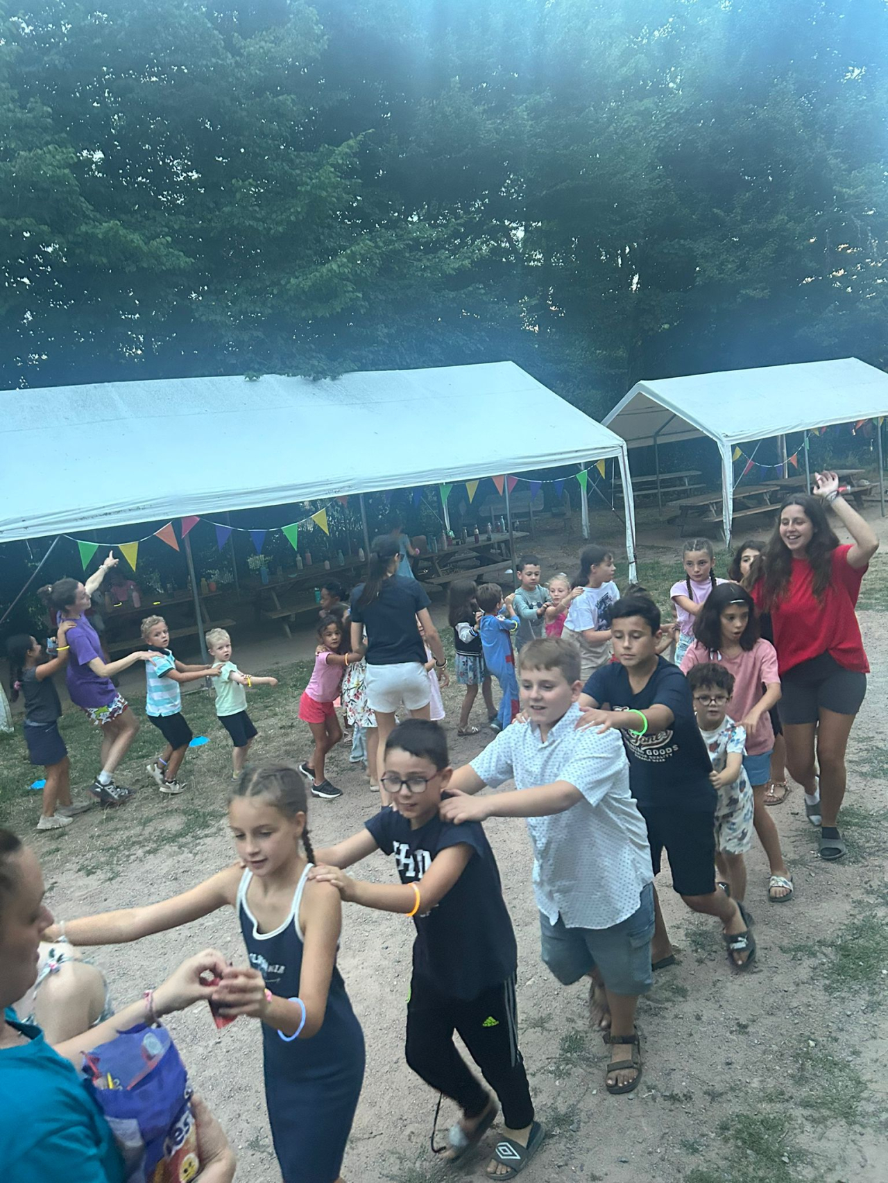 Après un repas composé d'une salade macédoine, de poulets à la crème et aux champignons accompagnés de leur boulgour et de yaourts liégeois, nous sommes fins prêts : la BOUM nous attend ! On a dansé, rit, joué .. bref, on s'est éclatés !